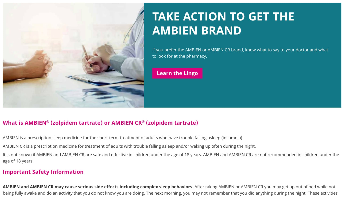 I cited the manufacturers very own statements that, “AMBIEN is a prescription sleep medicine for the short-term treatment of adults who have trouble falling asleep (insomnia).”